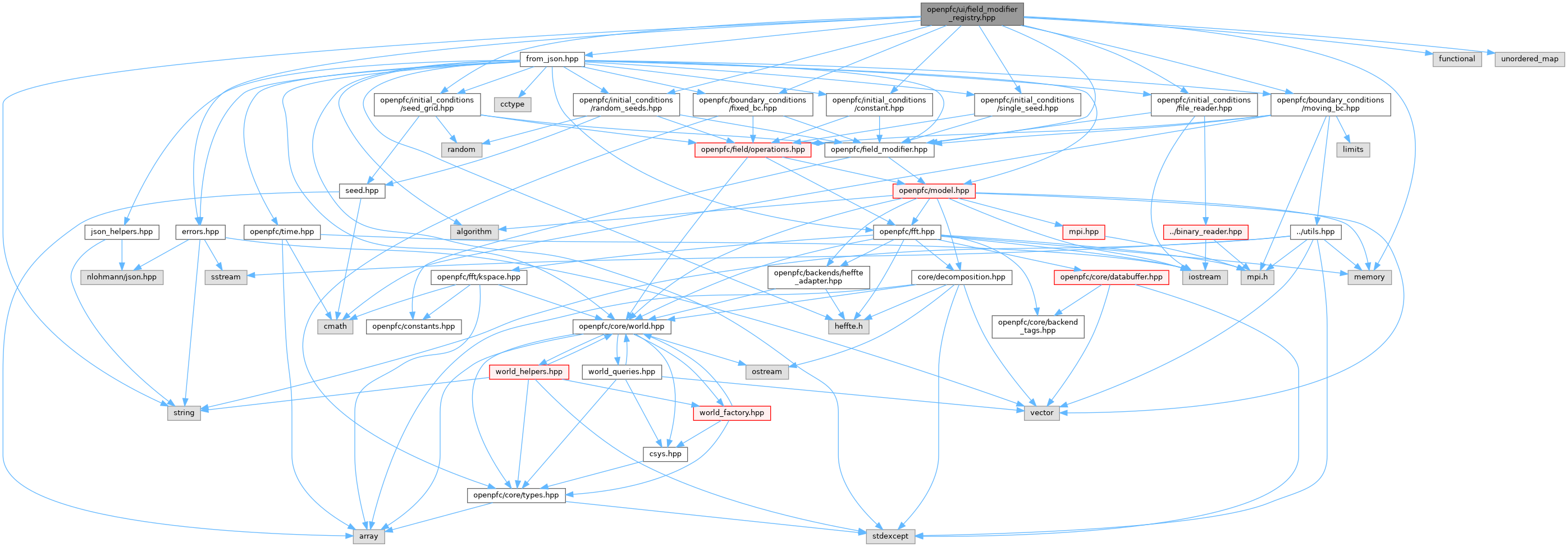 This header provides a registry system for field modifiers that allows dynamic registration and creation of field modifiers from JSON configuration. It supports both initial conditions and boundary conditions.