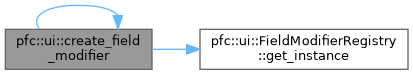 This function creates an instance of a field modifier based on its registered type. It retrieves the registered creator function associated with the specified type string from the FieldModifierRegistry and uses it to create the field modifier instance.